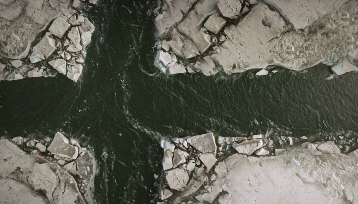 En gång blå och vit, nu grågrön och smutsig. På den grågröna flaggan har det blå korset ersatts av ett grönt kors på grå bakgrund. Färgerna symboliserar havets övergödning och vinterisens tillbakagång. De är hämtade från satellitbilder av Östersjön tagna av Sentinel-2.
